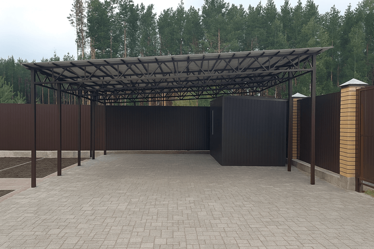 Навес для автомобиля из профильной трубы — это функциональное и прочное решение для защиты транспортного средства от осадков, солнца и ветра. Конструкция отличается долговечностью и возможностью адаптации под особенности квадратуры участка и предпочтения заказчика.