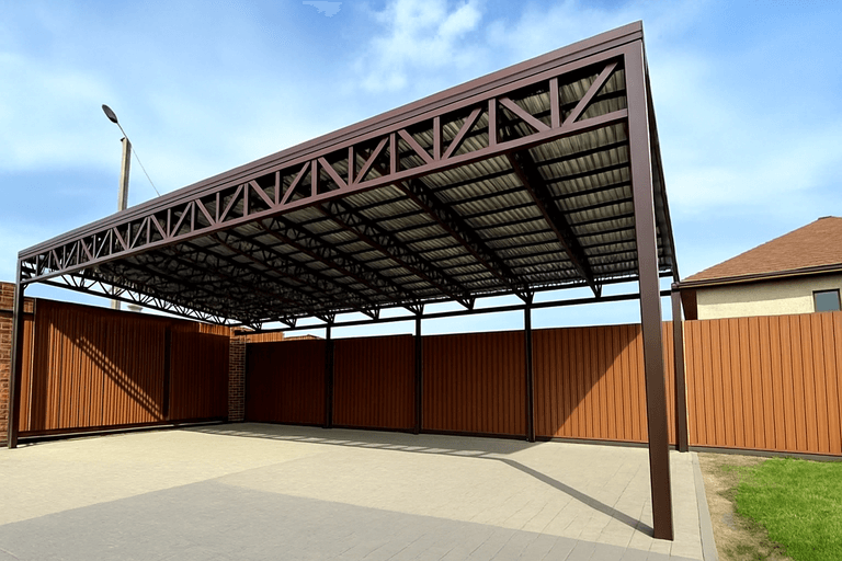 Односкатный навес — это универсальное решение для защиты автомобиля, зоны отдыха или хозпостройки от осадков и солнца. Благодаря своей конструкции он прост в реализации и отлично подходит для участков с ограниченным пространством. Мы реализуем односкатный навес с учетом ветровой и снеговой нагрузки, рельефа и пожеланий заказчика.